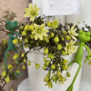クレマチス ペトリレイ💛💚 今年も咲きました~⸜🙌🏻⸝🤍 グリーン💚🤍💛ホワイトの色がとても可愛い🤗大好きなお花 ビオラさんたち💜モリモリです