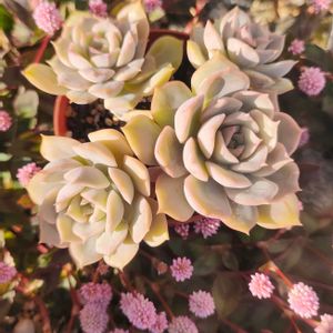こんにちわ🤗今日もとても暑い1日ですね💦💦そんな中でもタニパト😵💫焦げ焦げ多肉、ジュレ多肉が増えてた😭 ショックなので気分転換にお気に入りの鉢を2つ並べてみました。めちゃ可愛ー🩷 森の多肉園さんのレッドベリー綴化と名無しの寄せ植えです😆💗
