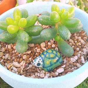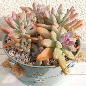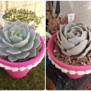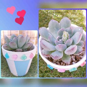 クレア プクプクのパキベリア属クレアちゃんです🎵 ひたん作 リメ鉢に植え替えました❣️ メルヘンチックな鉢はハードルが高いな〰️😅 🌱
