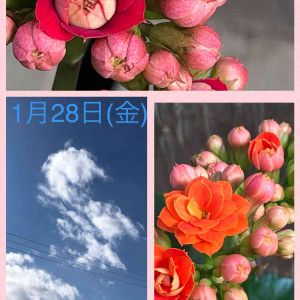 こんにちは(*´∀`*)❤️ 🏷金曜日の蕾たち 参加させて頂きます🎶🧡 2022年1月28日(金)晴れ☀️ 風が強く寒い日💙🤍 13時18分の空模様💙🤍
