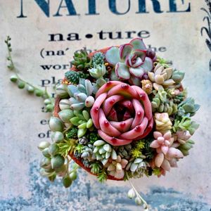 ikuraちゃんの飛び出セダム鉢に寄せ植えしたけど、真上から写真を撮ったので見えませ〜ん😆✨また次回見える写真投稿します😄🎶 真ん中の可愛く赤い子はビザールタケちゃんのトコのフローラというエケ💓周りはうちにいる子を寄せ集めました😄🎶