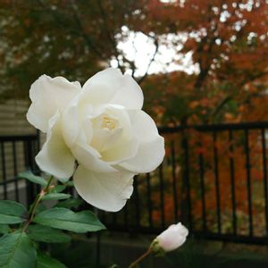 【アイスバーグ】《バラ科》 独 コルデス 1958年作品 1983年世界バラ会議で 殿堂入りした白バラの名花 光を浴びて ピンク色に染まってます😍 🏷水曜ローズショー