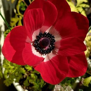 今日の花 アネモネ 花芯の黒がひきしめるようです