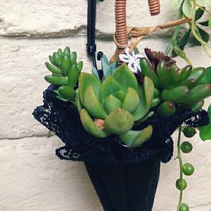 傘型のハンギングに、多肉ちゃん寄せ。 月一の「アトリエクラフト」さんの講習会です。今回はモルタル造形ではなく、ソーイングで傘のパーツを縫い合わせ、ワイヤーワークに大苦戦💦 でも完成品は、超かわいいので、毎日、眺めています。