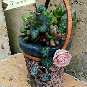 少し前に「多摩クラフトマーケット」のワークショップで作った寄せ植え🎵
