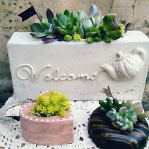 月一の楽しみになりました「アトリエクラフト」さんの講習会✨ 今回は、紙コップで型取りした、レース模様のモルタル鉢を造形、塗装して、それに多肉ちゃんを寄せ植え💖 GS仲間の参加もあり、楽しく作りました🎵 ちなみにハートカズラは、自前です💦 この、エレガントな鉢には、絶対似合うだろうと思って、準備して持参したのです💕
