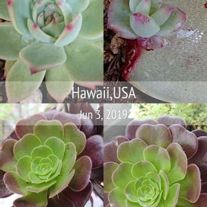 ⬆️ エケベリア属 桃太郎 葉挿し~👶ベビー👶 生まれてる😆🎶 ⤵️ ☘️一番大好きなカシミアバイオレット🍀 ⬅️ 親? 子供? 答 ➡️ 子供 ➡️ 親? 子供? 答 ➡️ 親 DAISO~連れ帰った🍀