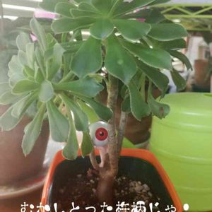 皆さんと同じように、普通の投稿をすると しかもそれが続くと 最近は、大丈夫⁉️って心配される...(ー_ー;) 皆さんに心配されないように😅 この季節、とても元気なアエオニウムを🎵 ゲストは目玉おやじさんです❤️