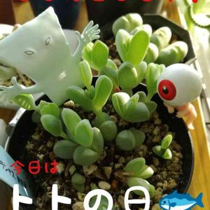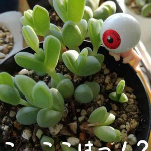 ラピダリア魔玉❤ ピッコロ大魔王のタマゴ出産シーンを彷彿とさせてくれます。 種から育てていますが、他の子より育て易かった❤️ すぐに芽がでて、 どんどん大きくなって、 気がついたら新芽が⁉️ 顔に見えると目と口を入れてしまうパピーダックの習性で、こうなりました。 『ピッコロ保育園』💕