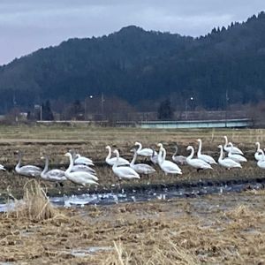 白鳥の羽休めと食事風景🏷白い水曜日 稲刈り後のおこぼれを食べています🦢 昨日の雨で雪もすっかり溶けて久し振りのお天気☀️明日からは☔️☃️ 明後日は仕事&お墓掃除に東京へ帰省です