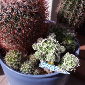 【ハクチョウ】さん、梅干しの容器に植え替えました((o(^∇^)o)) アップにすると、まるまるトゲトゲ可愛い♪ 右下の子は誰ですか?