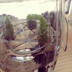 水耕中のサボテン ハクチョウが成長してる( *`ω´) もちょっと日が差し込む所に置いた方が良いかな