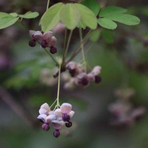 五葉アケビです。 アケビと言うと実が思い浮かびますが花が可愛いですよ(^。^)