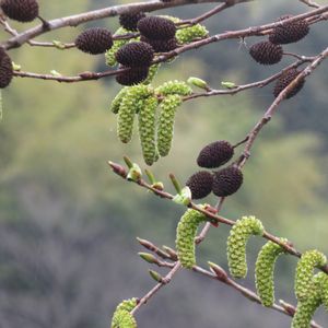 オオバヤシャブシの実と雄花と雌花 秋から春へ♪ 昨日の投稿の際に、ヤシャブシには雌花と雄花のがあると知り調べると、 ヤシャブシは雌雄同株でした。 新芽と雌花、雄花、実の付き方から、こちらはオオバヤシャブシのようですネ♪ オオバヤシャブシは新芽と小さな雌花が付き、その後に雄花がついています!