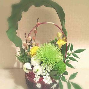 今日のレッスンの生徒さん作のフエゴを使ったお正月アレンジです。 じつはうちは喪中なのでお正月の松は飾りません(;´д`) あとでバラの花とかと合わせて飾ろうと思ってます♪