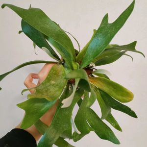 ビカクシダ ネザーランド えせ苔玉の葉っぱがどんどん大きくなりまして、上のいたつけ(針金付け?)に負けない見た目になってきました。 部屋が狭い&散らかってるので画角に迷い、下からのあおりになりました📸