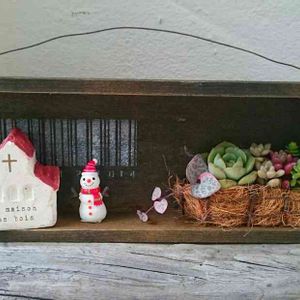 今週末のワークショップでやる 寄せ植えの見本作ったよ🎵 手作りバザールのテーマがクリスマス🎄なので、 それっぽくしましたが飾りを変えて使えば、色々な楽しみ方が出来ると思います(o´罒`o) こちらはタブロータイプ〜💓 お家とSETで1800円。 タブローは全部で5色ご用意。 雪だるまはオプションです。 ワークショップするお時間がない方には、セットで販売も出来ます(お持ち帰りの場合1600円)🎵 11月2日の投稿に詳しい場所載せてあります〜🎵