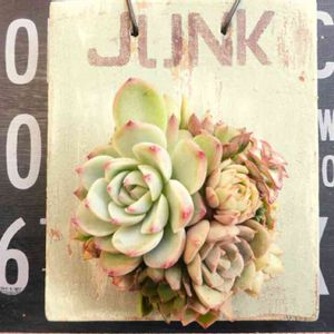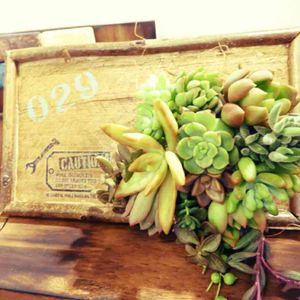 タブロー多肉に水やり中。 逆さにして水に浸してます。 お友達作のタブロー、裏側もかっこいい仕上がりです☺︎