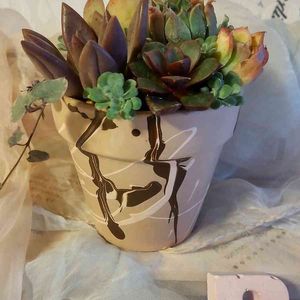 おはようございます💞🙋 先日のイベントでいただいた鉢に寄せ植えしましたよ🎵💞 すごく好みで、嬉しかったです😆🎵🎵 直接お会いして、プレゼントされたので、感激しましたよ🎵💞 GSされていない方なのですが、とても素敵な方 でした🎵 さぁっ❣️💕 お返しのドライリース、頑張ろう🎵💞