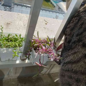 冬の間も夜だけビニールをかけてベランダでずっと過ごしていたガジュマルも葉を増やしてさも高くなりました❣️ 植物の生命力ってすごいですね。 普段はゆっくり愛でてあげる時間もなくスルーしがちだけど、今日はなんとなく気になる鉢でした(^-^)