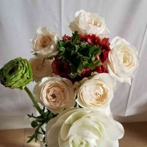 ラナンキュラスとスプレーバラ春色