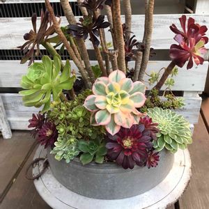夜中に雨が酷く☔ 七福神の植え替えしたのが心配になり雨の中😅軒下に移動 (゜Д゜)アッ!? アレもコレも苦になって寝てられない💦 アエオニウム ハロウィン🍀 花が咲きました🌼 ↘️愛染錦の花も咲きそう💦