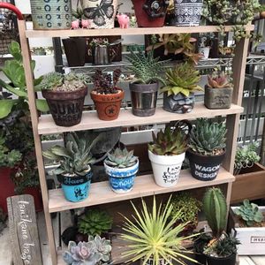 端材で多肉棚 作って見ましたぁ٩(ˊᗜˋ*)و 上段の真ん中 ニクサーナ錦チョット徒長してます😅 下葉取って葉挿しに〜 成功率高くてニンマリ( ◜ω◝ ) (゜Д゜)アッ!? 日にち間違えて 🐖のおしりは見なかった事に🤫 今日は🚗💨💨オデカケ