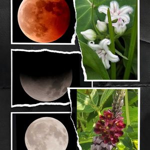 今日のお花と皆既月食です 別名 サオトメバナ と 深夜の皆既月食 初体験🥳 右下から 最後は左(ボケてる!) しだいに右側が暗くなってきたので🤳🏼やめました 首と膝が〜😂 今日は昼寝決定🤭