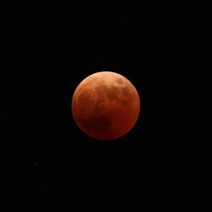 昨日の皆既月食🌕 綺麗でしたねぇ- ̗̀ ( ˶'ᵕ'˶) ̖́- 昨日、夫と一緒に近くの土手で何百枚も撮って、2枚だけピント合ってたみたいです🥳 偶然ながら、天王星食も撮れてました💕 連投しますね🌙*゚ こちらは完全食 まん丸いピンポン玉みたいだな🧡って思いました😄