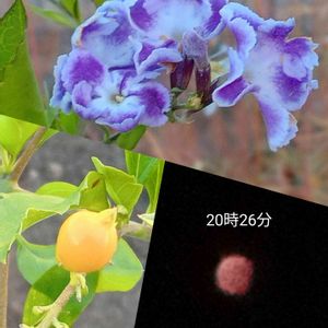 ディュランタ宝塚🌿💜 今朝ふと目に止まったデュランタの実👀💛 花も少し咲いて頑張ってました💜 こちらから見える月です(スマホではこれが限界です💦)