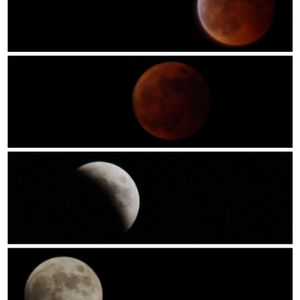 記念に撮りました🌕🌔🌓🌒🌑 肉眼とおなじには撮れなかったけど… キレイでしたネ 肉眼より赤く写りすぎるみたい そしてまだいまもキレイな薄紅…✨ 📝_φ(・_・メモメモ🌑 〜皆既食は太陽と地球、月がほぼ一直線に並ぶ現象。月が真っ暗にならず赤銅色になるのは、地球の縁で屈折した太陽光のうち、赤い光だけが届くためだ〜 ということらしいですヨ…なるほど