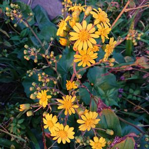 ツワブキの花が咲き始めました🥰 夕日があたってキラキラ✨🧡✨ 皆既月食始まりますね🌕️