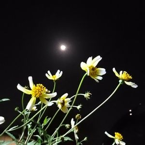 ビーバームーン🌝 &今夜は〝ほぼ皆既月食〟でしたね🌒 ビーバームーンに 人間関係や恋愛の願い事をするとよいですよ💕 ~皆さんの祈りが届きますように!🛐o(^o^)o ウィンターコスモス 月姫さんと👸 今夜の月にピッタリのお花でした🌸🌸