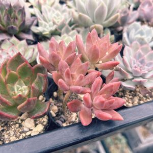 多肉の秋🍂多肉狩りに行きました。feelさん編 寒いところでは多肉が夜中に凍ったっていう声も聞きましたが、大阪は多肉の秋、いい季節になりました。 先日インスタで見かけて、ブロンズ姫とよく似てる、色が綺麗なカリフォルニアサンセットを見て欲しくなって、大阪府八尾市のfeelさんに行ってきました。 お目当てのカリフォルニアサンセット、ありました🥰3ポットも買いましたが、プランターいっぱいに植えたかったので… 他にはアプリコット美人、(ティチュバンス錦)の真ん中のピンクが可愛すぎてこれも3つ。 後はファイヤーピラーとピンクシャンペーン、真ん中の紫色に惹かれてナンバーワン。 こちらのお店はセダムが豊富。 モリモリの乙女心とかも欲しかったんですけど、まぁ、この辺りで我慢しました。今回は私の誕生日が近いので、もらったお祝いで買いました。 帰ってから全部植え替えたので、また載せたいと思います。