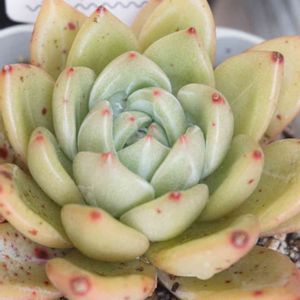 多肉さんご紹介197 モンローシャンパンhyd2302 一度、お外デビューしたものの、 寒さで根っこ全滅。 発根のため、お家療養を経て 再デビューです✨ 日照不足により、 緑へ戻りパッカーンです🙄