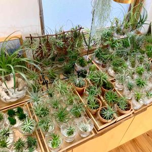 去年バナナプラントを水鉢の土に地植えしたら、今年は3つもバナナプラントができました🍌🍌🍌 可愛いんで、1つは室内で育てることにしましたんで記念に🍌 お気に入りのテクトラムと。 トリコーム最高です。