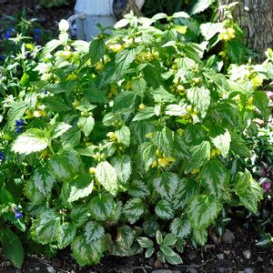 ラミウム ガリオブドロン シソ科 別名 ツルオドリコソウ 花は短命ですが 葉っぱの斑が特徴で葉だけでも楽しめます☘️