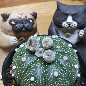 サボテン🌵の展示会で、お迎えしてきました(´∀`*)💗 棘の無い子にしました(o^^o) 棘凄い子は、いただきものです!ラッキー!だけど、やっぱり、刺さりました( ̄^ ̄) かぶとさん、白い模様が、手で描いたみたい!大きくなって、お花🌼咲きますように(*´꒳`*)