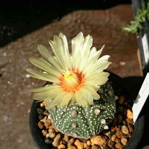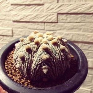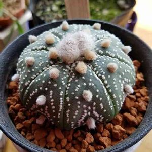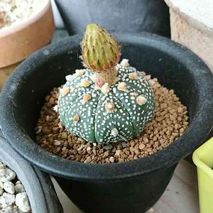 サボテンは植えかえの時、トゲが困りものですが、カブトさんなら楽々です😊 今年は格上げして、信楽焼きの植木鉢に入れました🎶 うちのは普通の兜ですが、世の中には赤い花の咲く兜もあるようなので、見てみたいです🎶