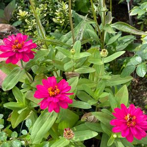 夏に元気な代表格のジニア❤️花友の叔母が種まきして分けてくれました♪モリモリ咲きます‼️