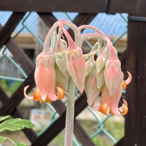 名前忘れた多肉植物に花が咲いてきました♪うつむいてかわいいですね🥰