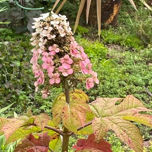 これも花友からの贈り物、赤の柏葉アジサイです😊少し色づいて来ました♪