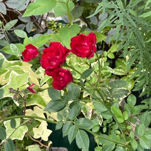 ずっと欲しかったレッドキャスケード🌹去年の秋に見つけてお迎えしました。まだまだ小さな苗だけど元気にたくさん花をつけてくれました😃