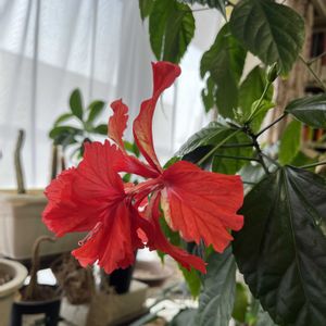 ハイビスカス🌺フラミンゴ🦩 今日のお花です(*´︶`*)ノ たびたびの投稿でごめんなさい💦 とっても元気に咲いてくれたので🤲皆さんも、元気な一日に(*^^)v
