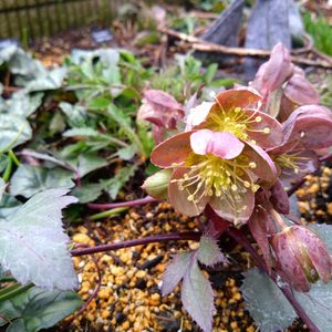 8.7℃🌅/15℃☁予報 クリスマスローズ 1️⃣ロッキーズ 4年目?あっちこっち引っ越しをくりかえしようやく安住の地をみつけました🏠️🩶🩷 2️⃣スノーフィーバー 3️⃣インディゴブルー 4️⃣マリアージュ 寄植え🪴でたくさん咲いてくれましたが、なんだか株がぐらぐら?植え方悪かったかも😥 花壇にお引越ししました🧤 5️⃣カルロッタ 少し前に3年目咲かないクリスマスローズを鉢上げして、かわりに地植えにしていました🇮🇹