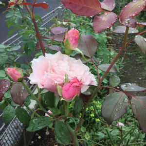 クー ドゥ クールが咲きました。 カタログとは違って、グレイッシュピンクの春花です。 我が家のバラの中ではダントツに早い開花なので、早咲き品種のようです。