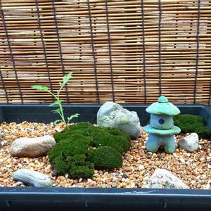 道路の敷石から取ってきた苔と、庭から掘り出した石で、ミニ苔庭作りました。 今日は石の日、参加させて下さい。😊