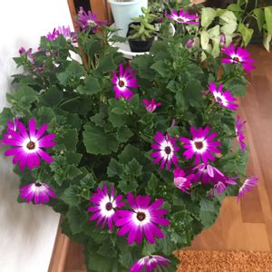 木立ちセネシオ(サイネリア)桂華です。 直立して伸びた茎の先端に、花を咲かせます。 非常に丈夫で、切り戻しをすることで次々と花を付け、開花期間が長いのが特徴です。 スペイン領カナリア諸島・ポルトガル領マデイラ諸島・アゾレス諸島原産。 キク科ペリカリス属の1年草。