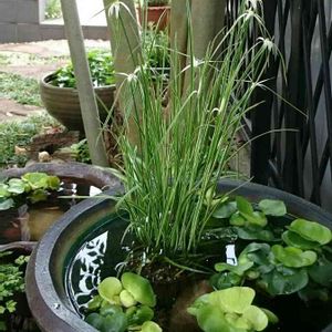 先日お邪魔した春夏秋冬さんで購入した斑入り白鷺カヤツリ。 店主さんが「これは水の中にドボンと入れておけばいいから楽ですよ〜」と教えてくれました。メダカ鉢に入れてみました!