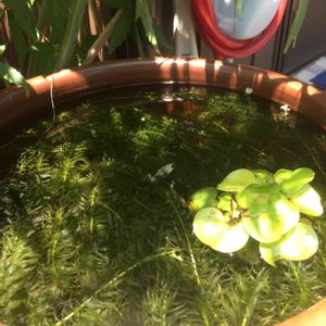 ハス鉢のメダカも テラスに引き返してきました 花満開になった ウォーターマッシュルーム 植え替えて すっきりしました メダカと共存して モリモリになってね